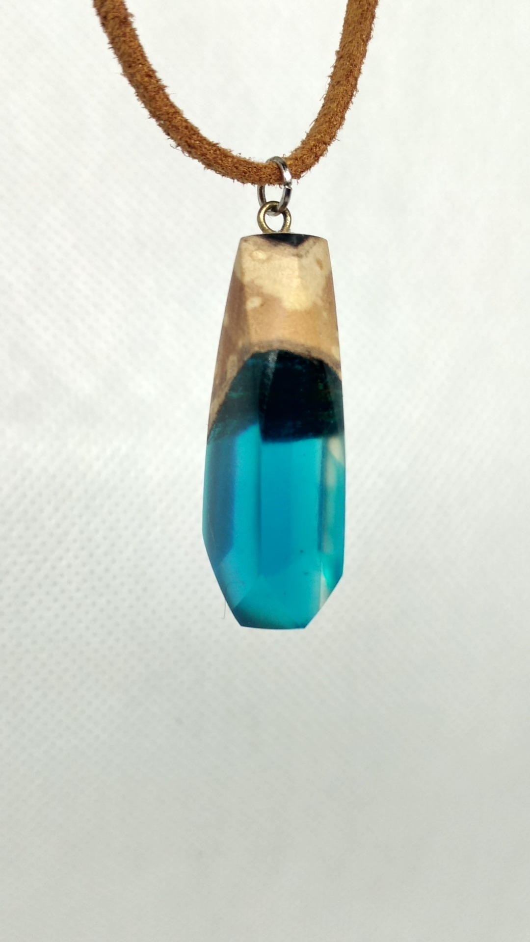Pandativ unicat din lemn de maslin completat de rasina cu pigment pe baza de alcool, albastru, fatetat si respectat cu migala ore in sir. True handmade.