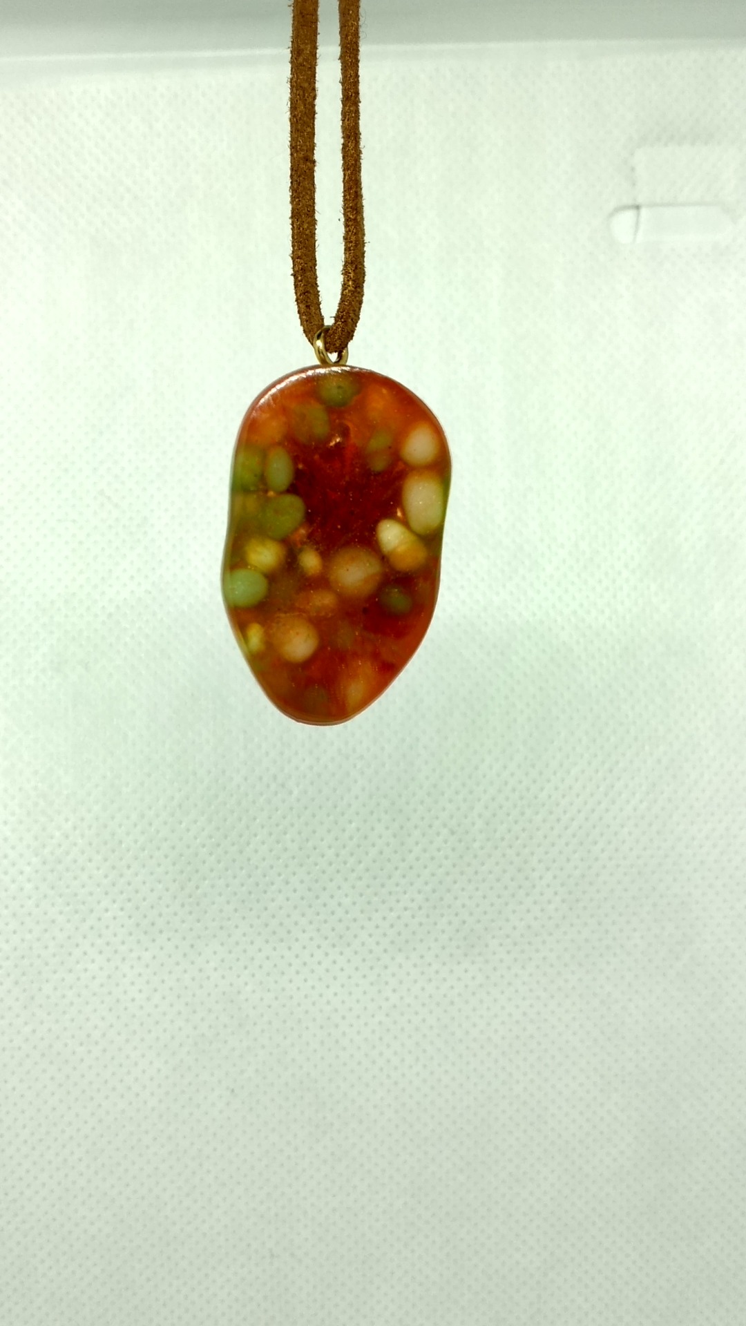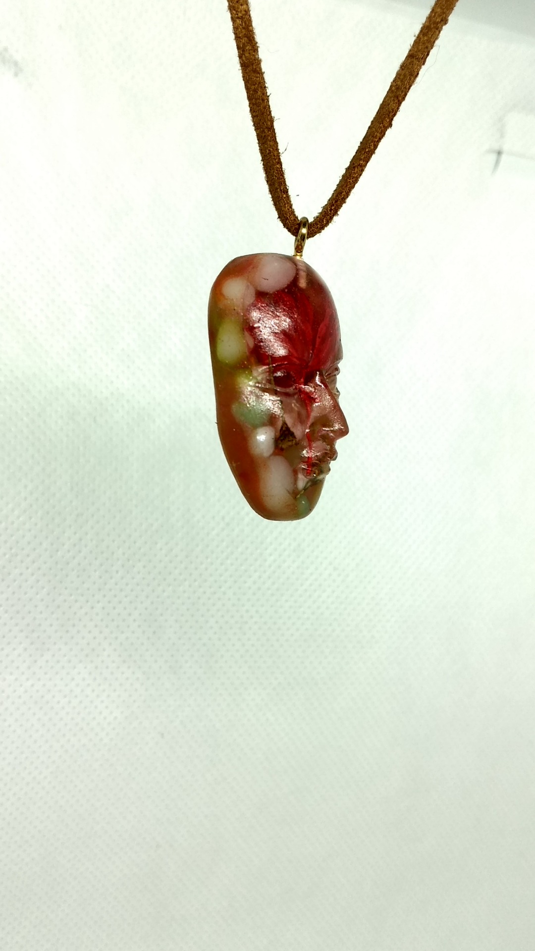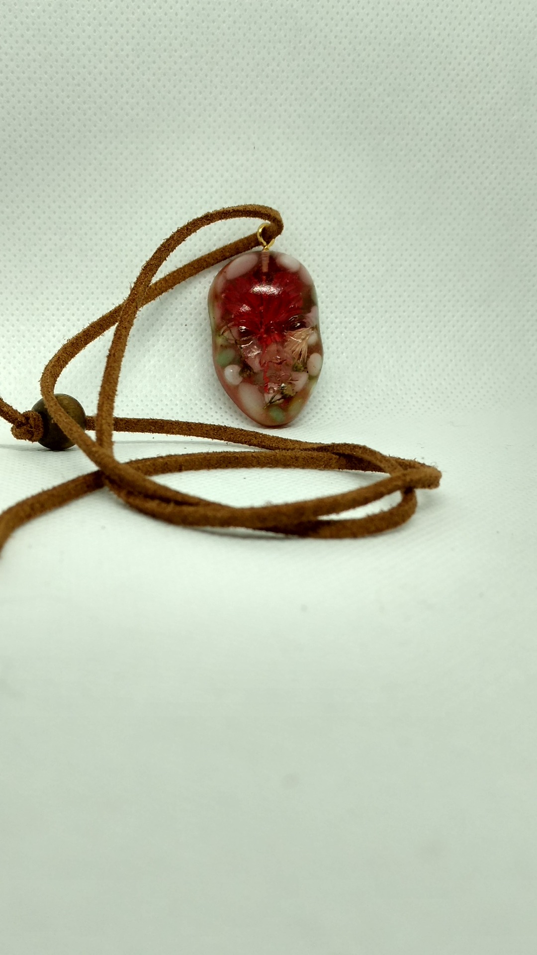 Pandativ in forma de fata umana compus din rasina cu insertii de flori uscate si pietricele semitransparente din mare.