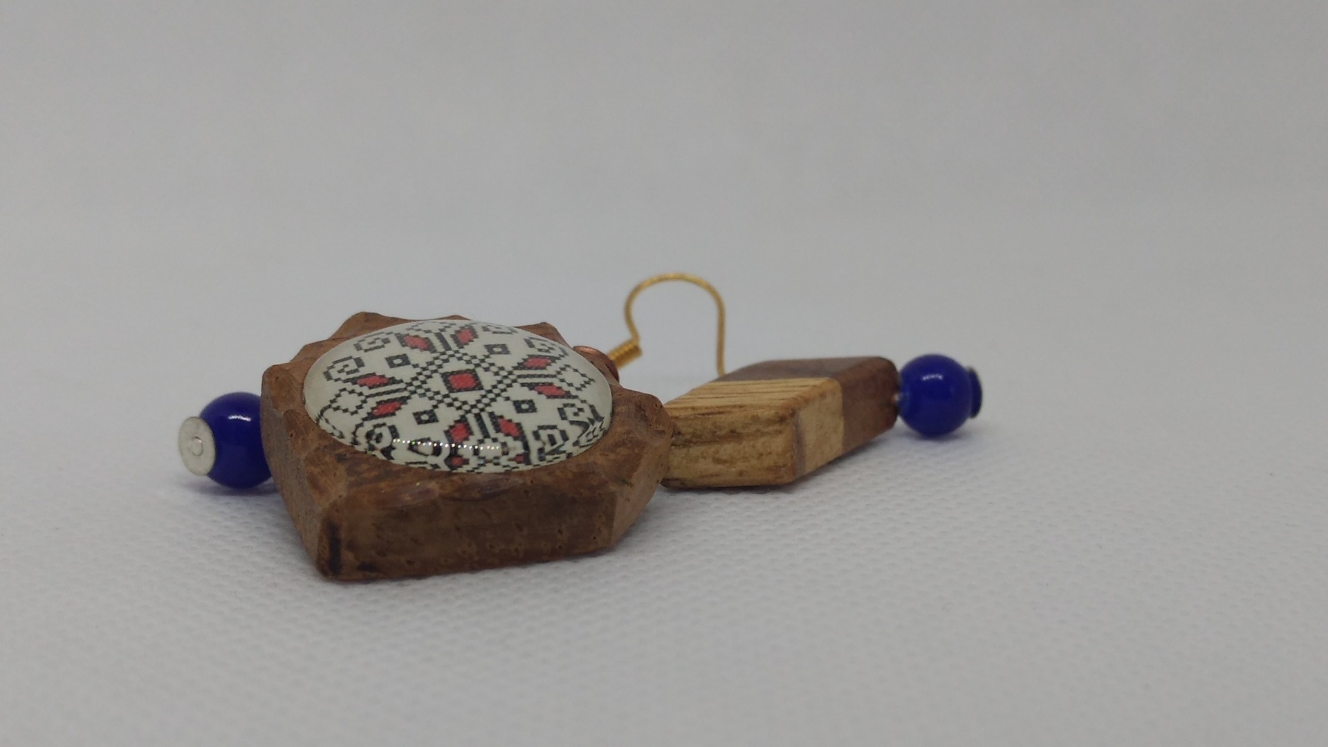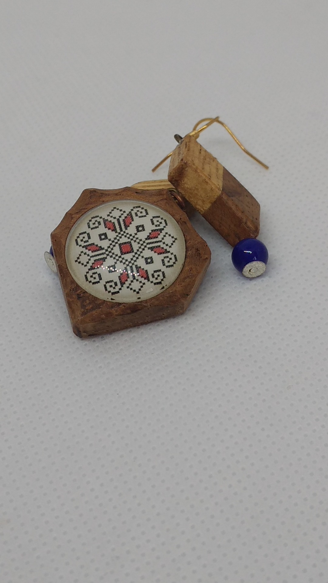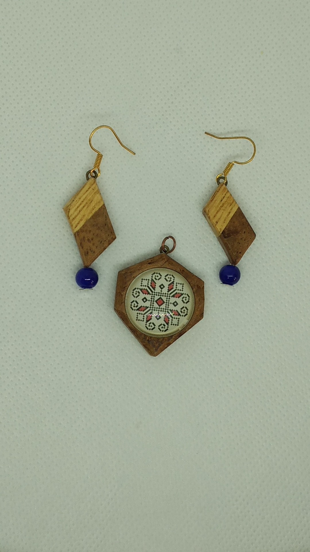 Set din lemn specia sapelli si lemn de trandafir. Insertie motiv folcloric romanesc.