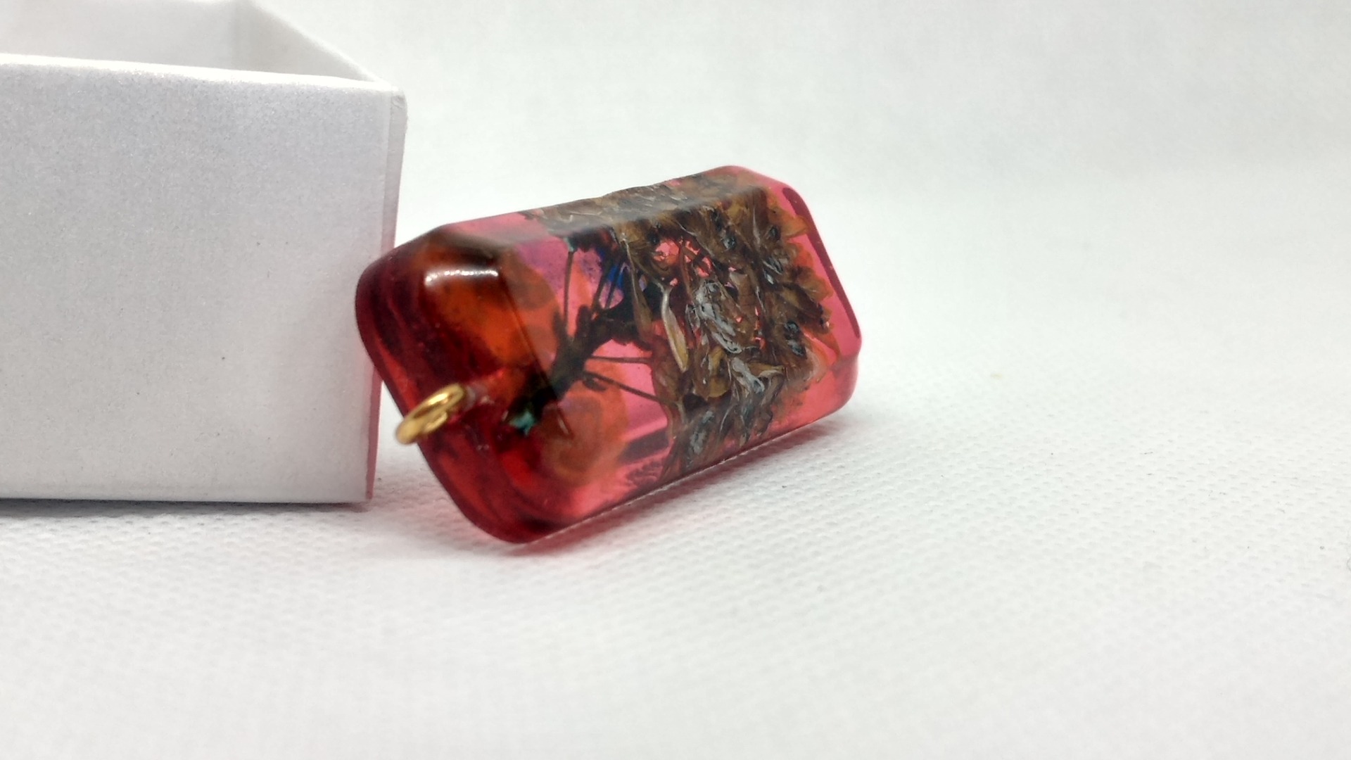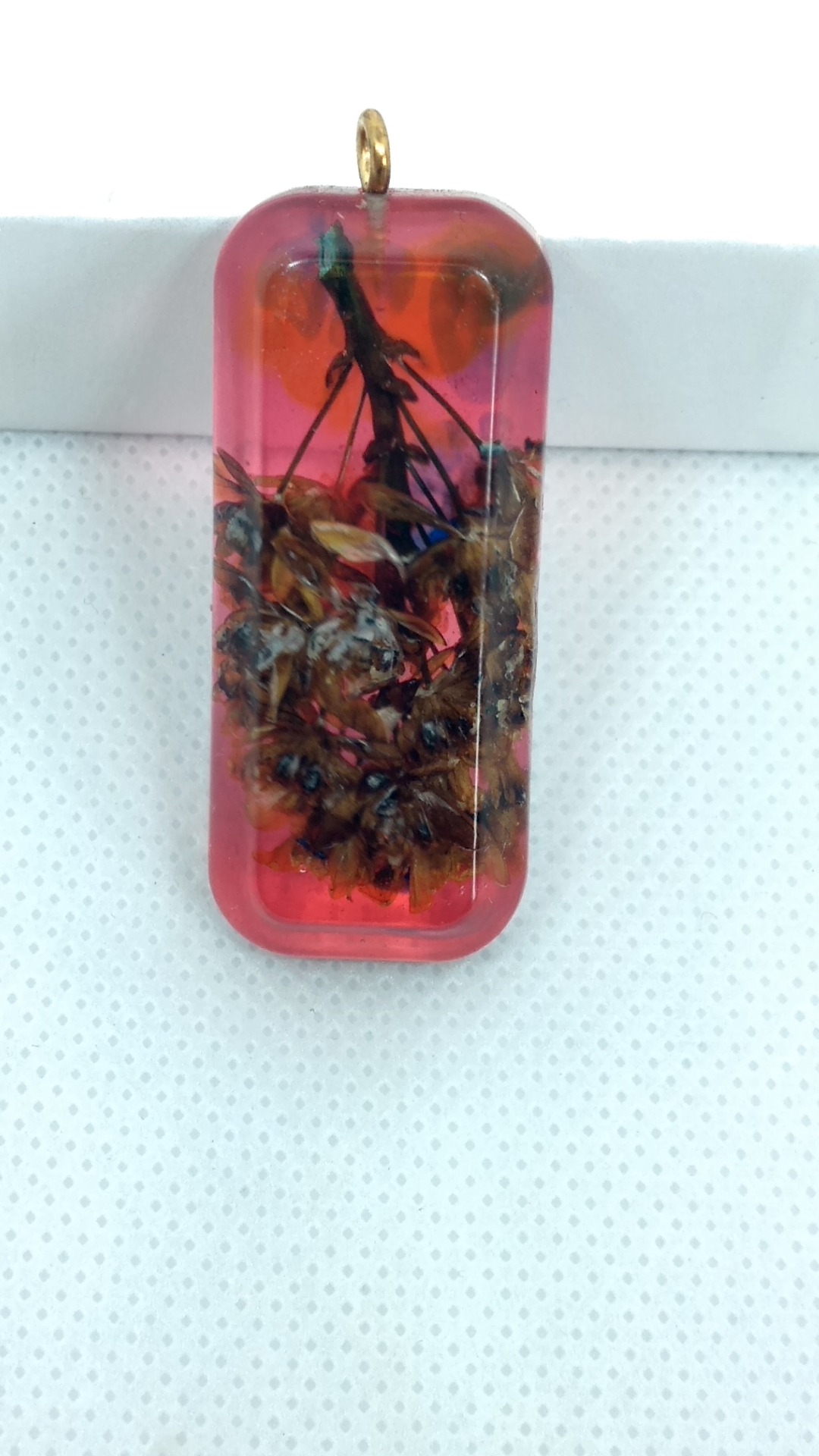 Pandativ forma dreptunghiulara din rasina cu insertie - flori uscate, agatatoare aurie.