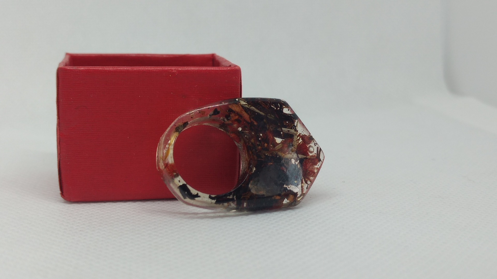 Inel din rasina cu insertie de flori uscate
