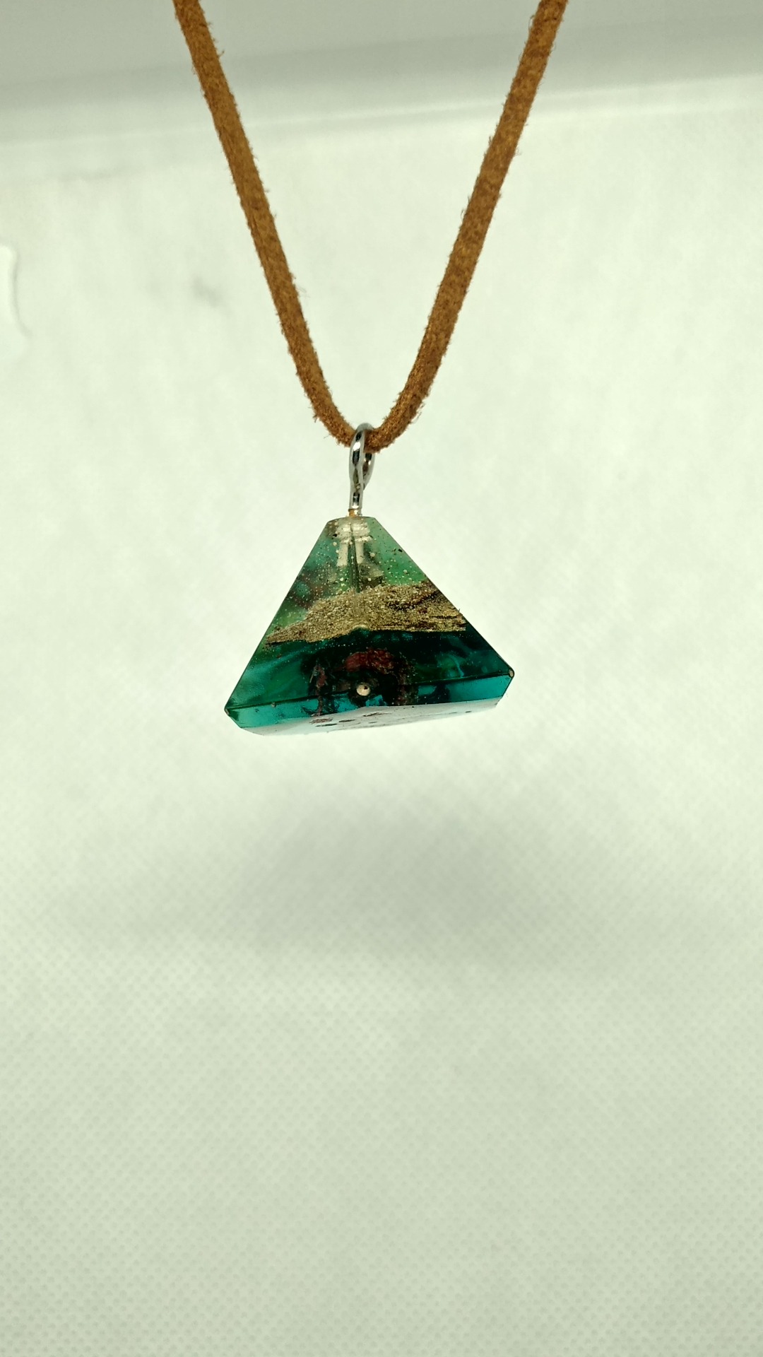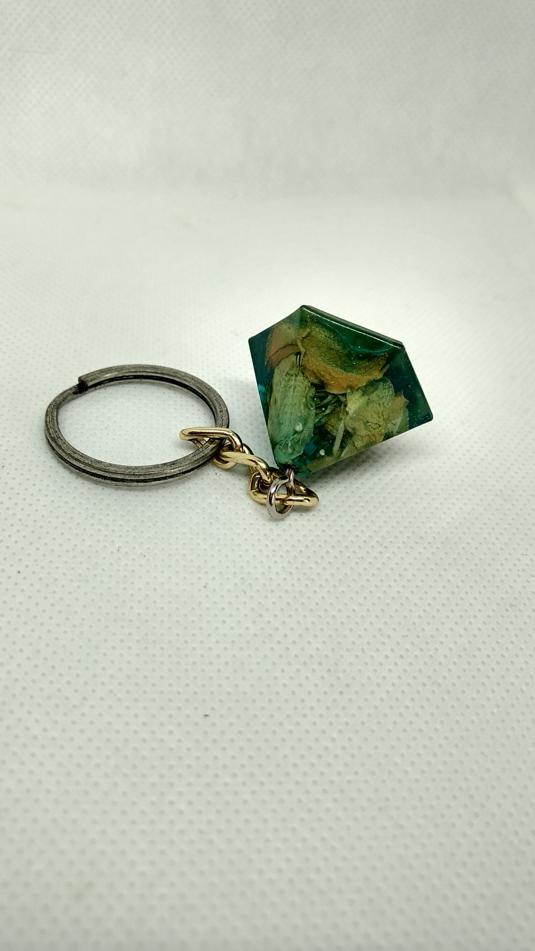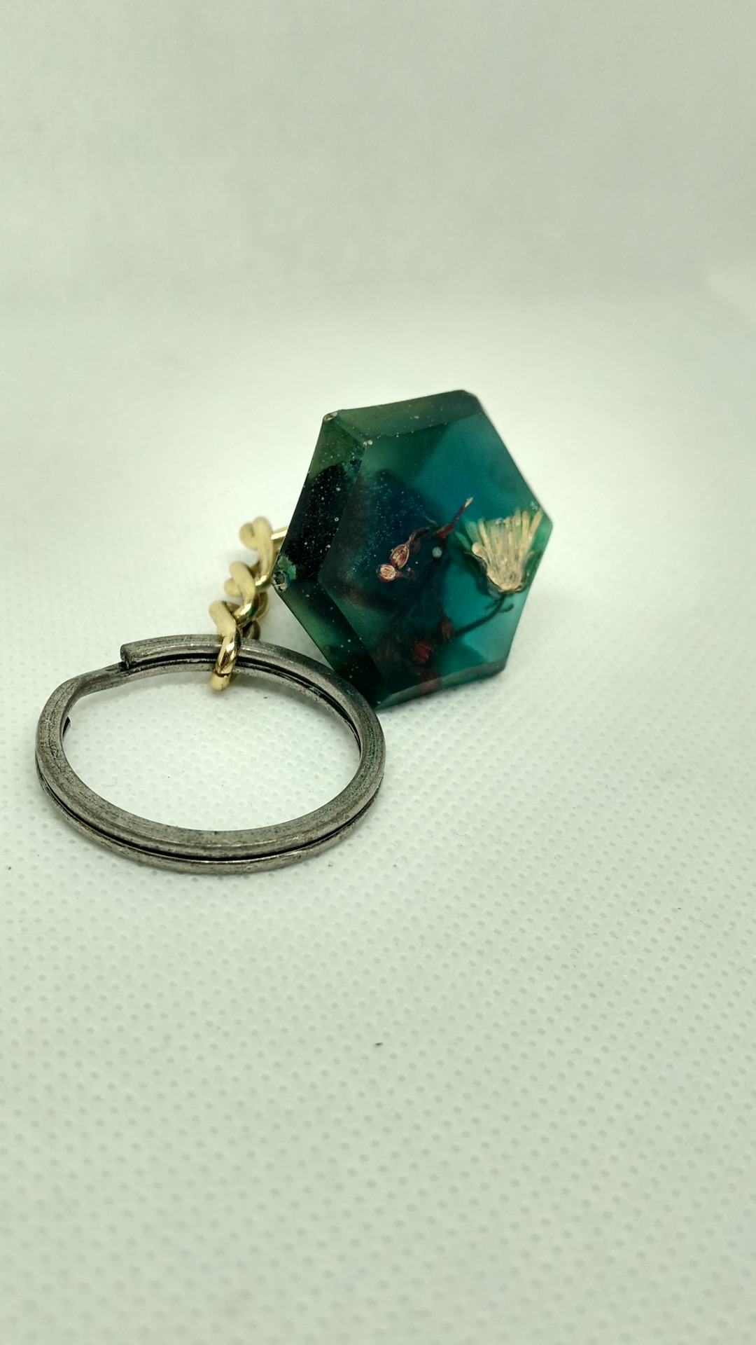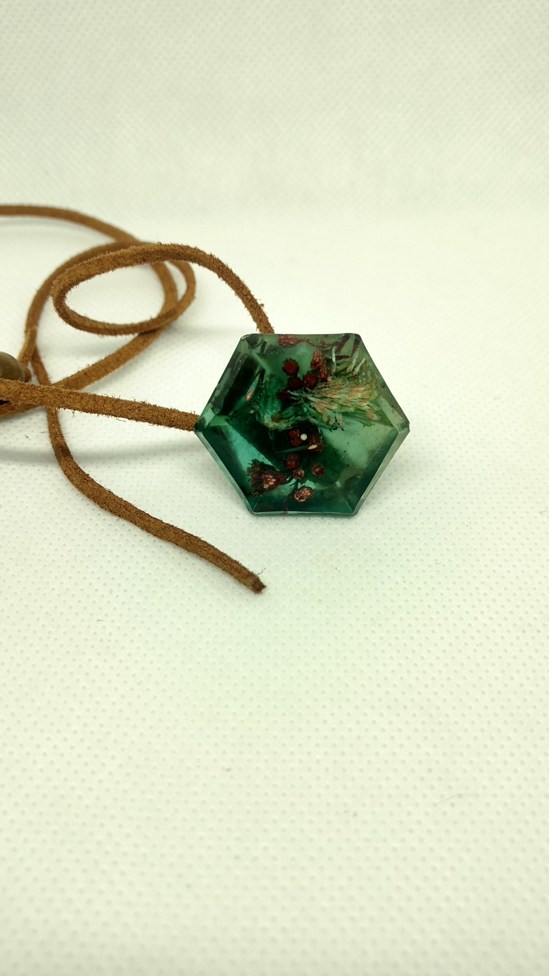 Rasina pigment albastru/verde cu insertii de bucatele de lelmn diferite specii, flori uscate si licheni.
