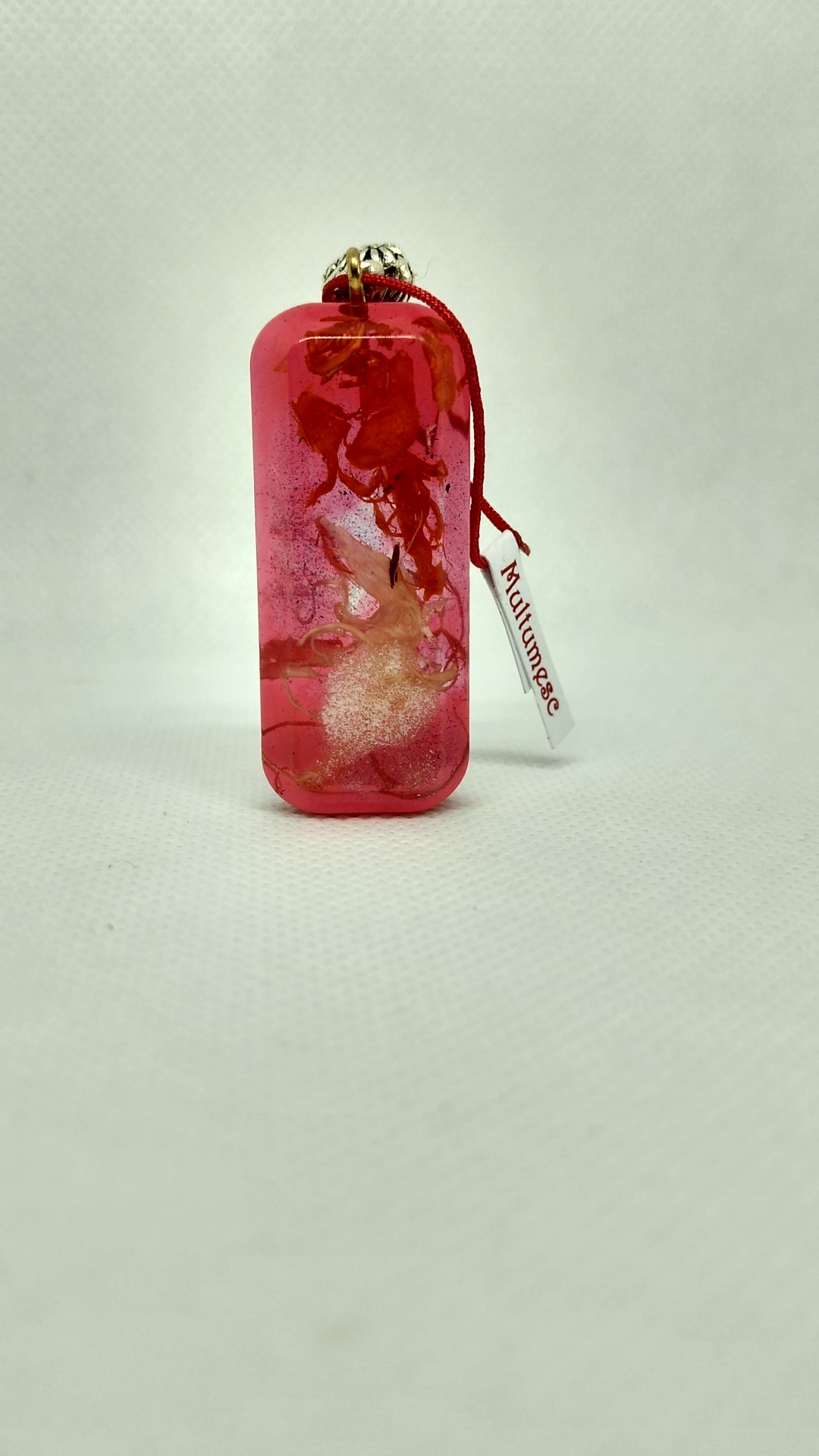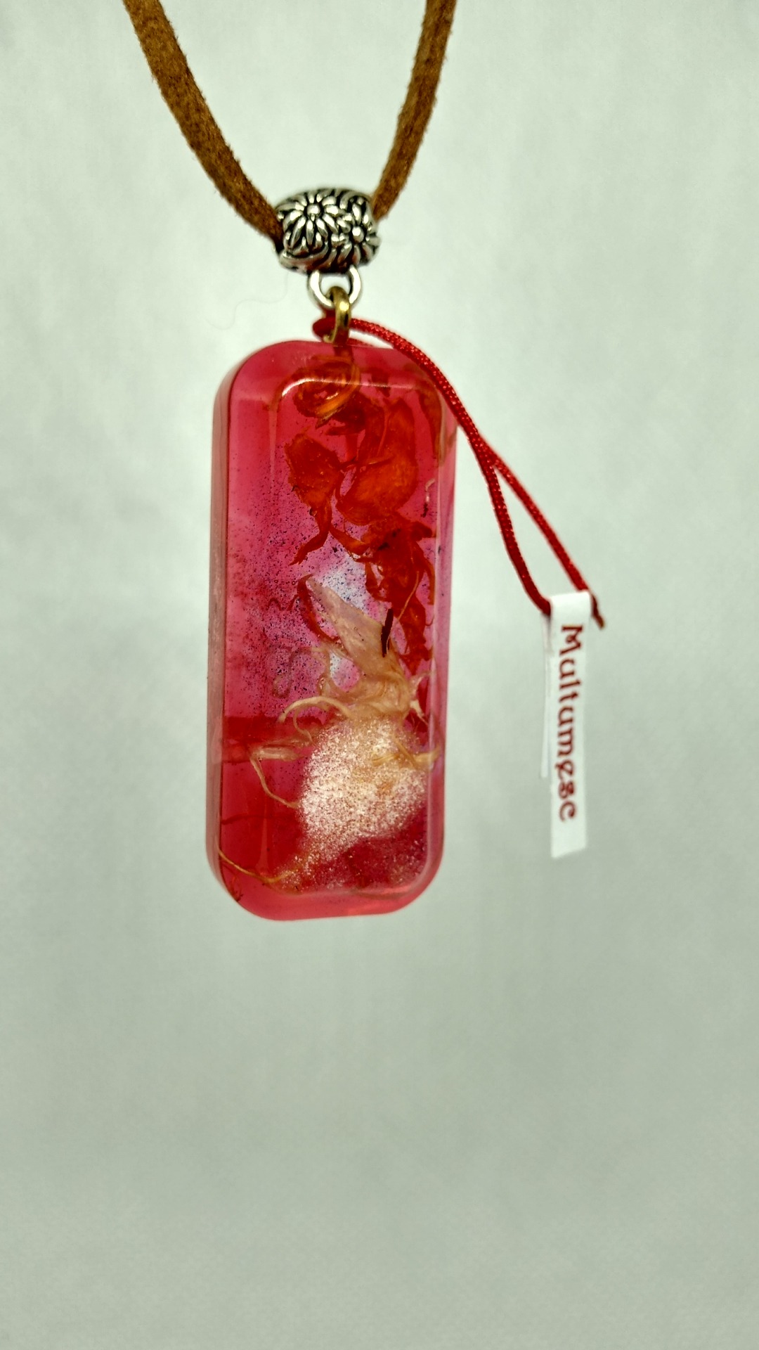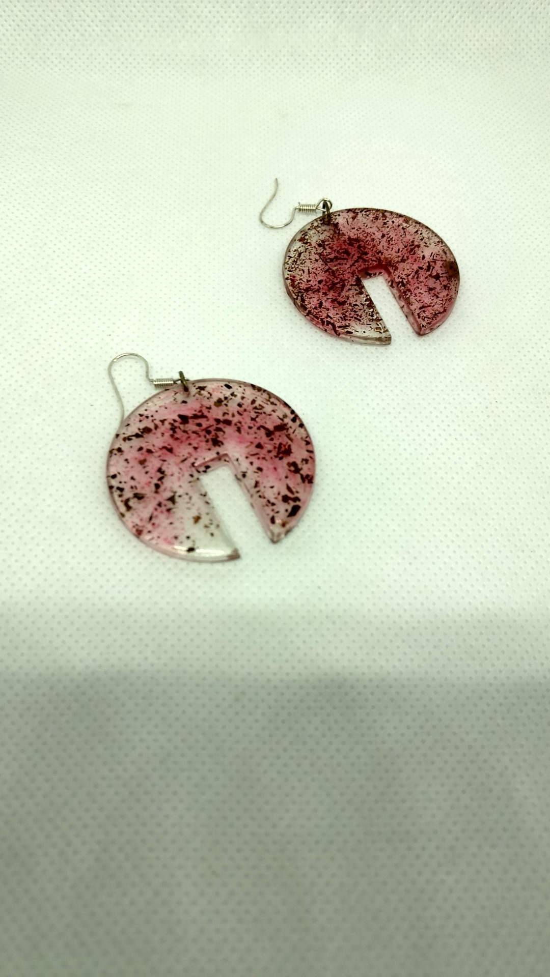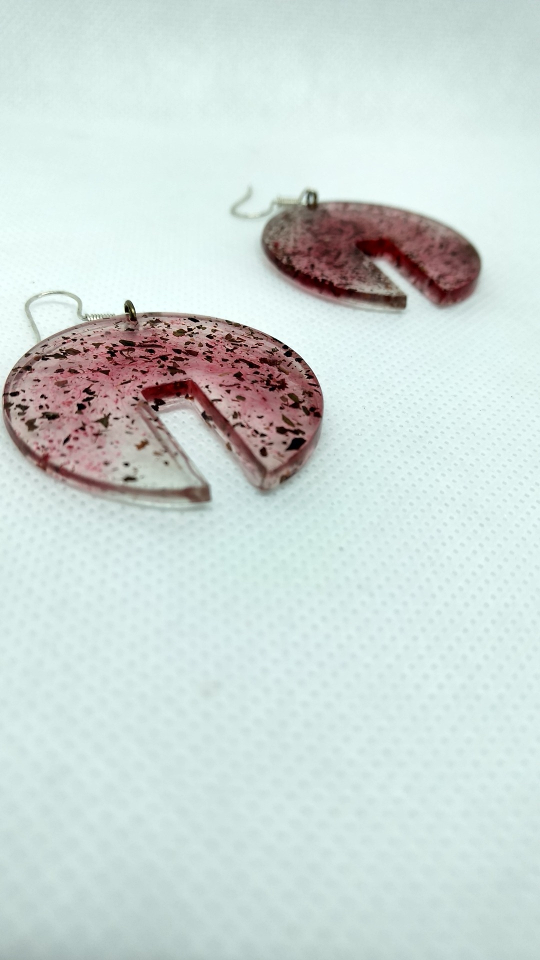 Set - pandativ rasina pigment rosu cu insertii de pin rindeluit, cercei cu insertii de ceai negru si verde.