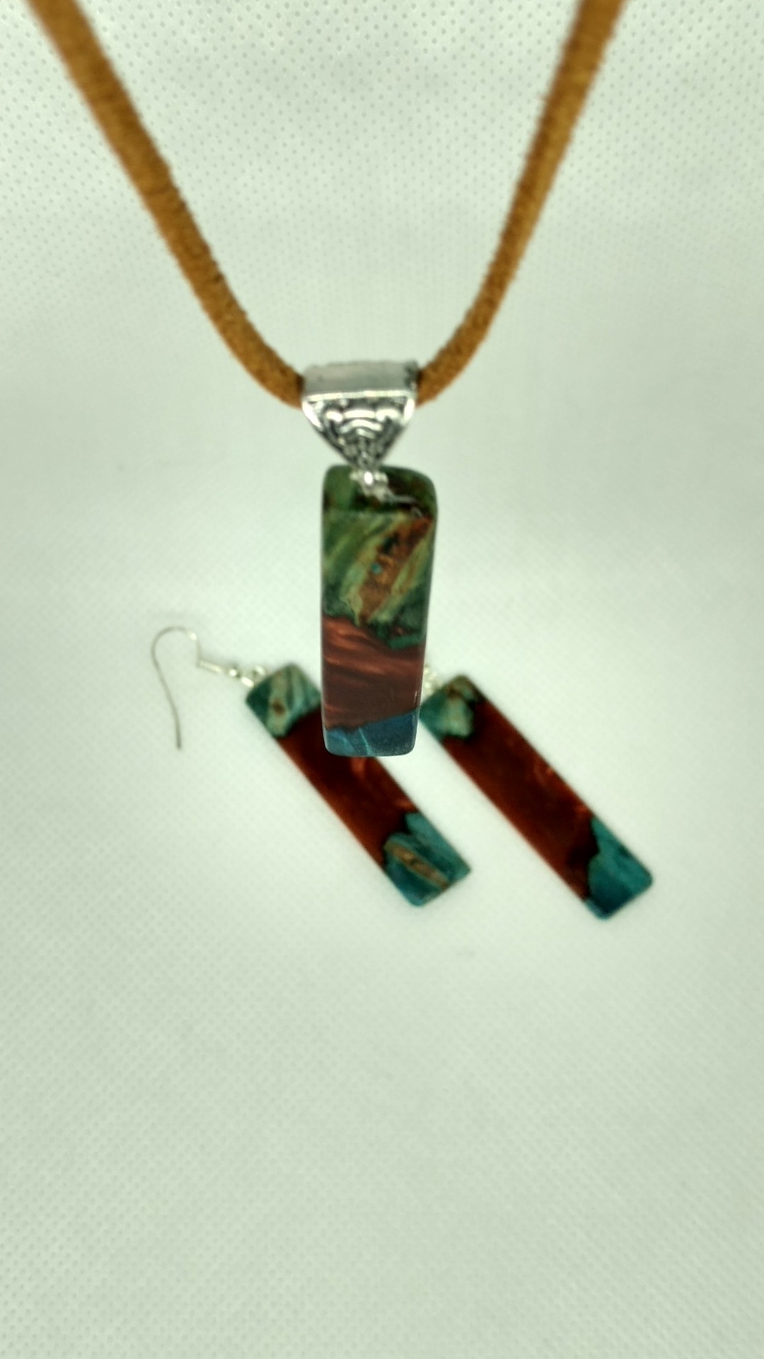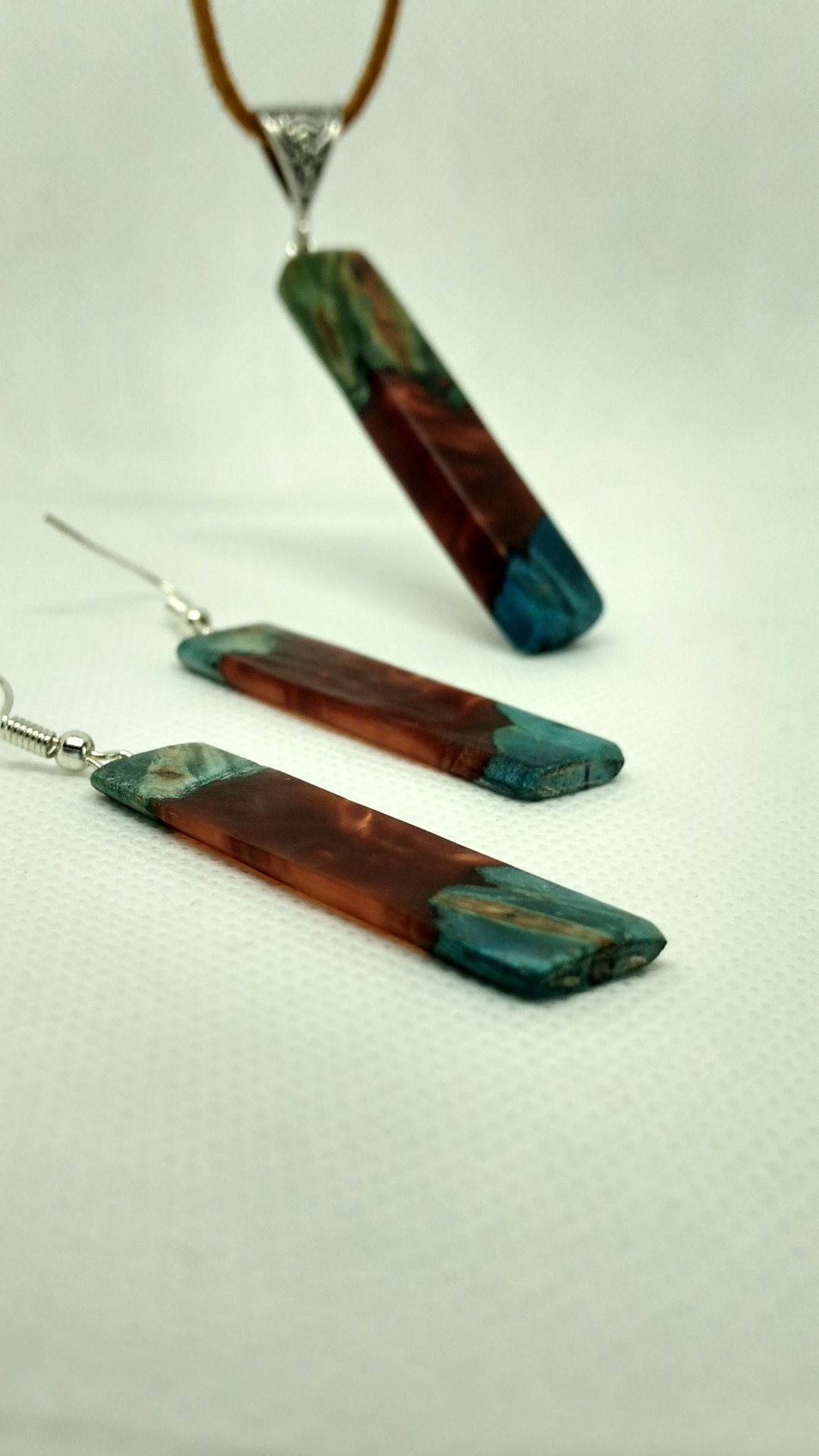 Set din lemn de paltin si salcam stabilizat; Rasina pigment rosu metalic.