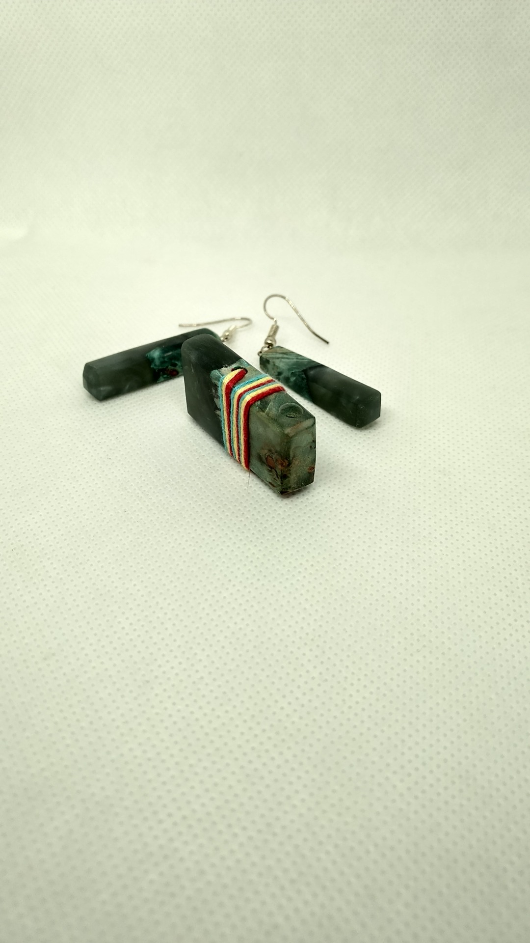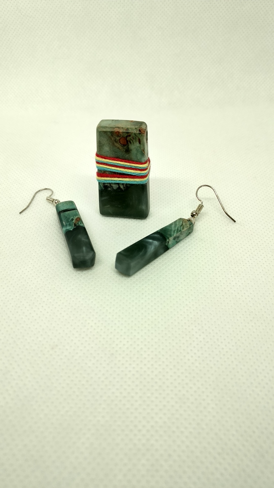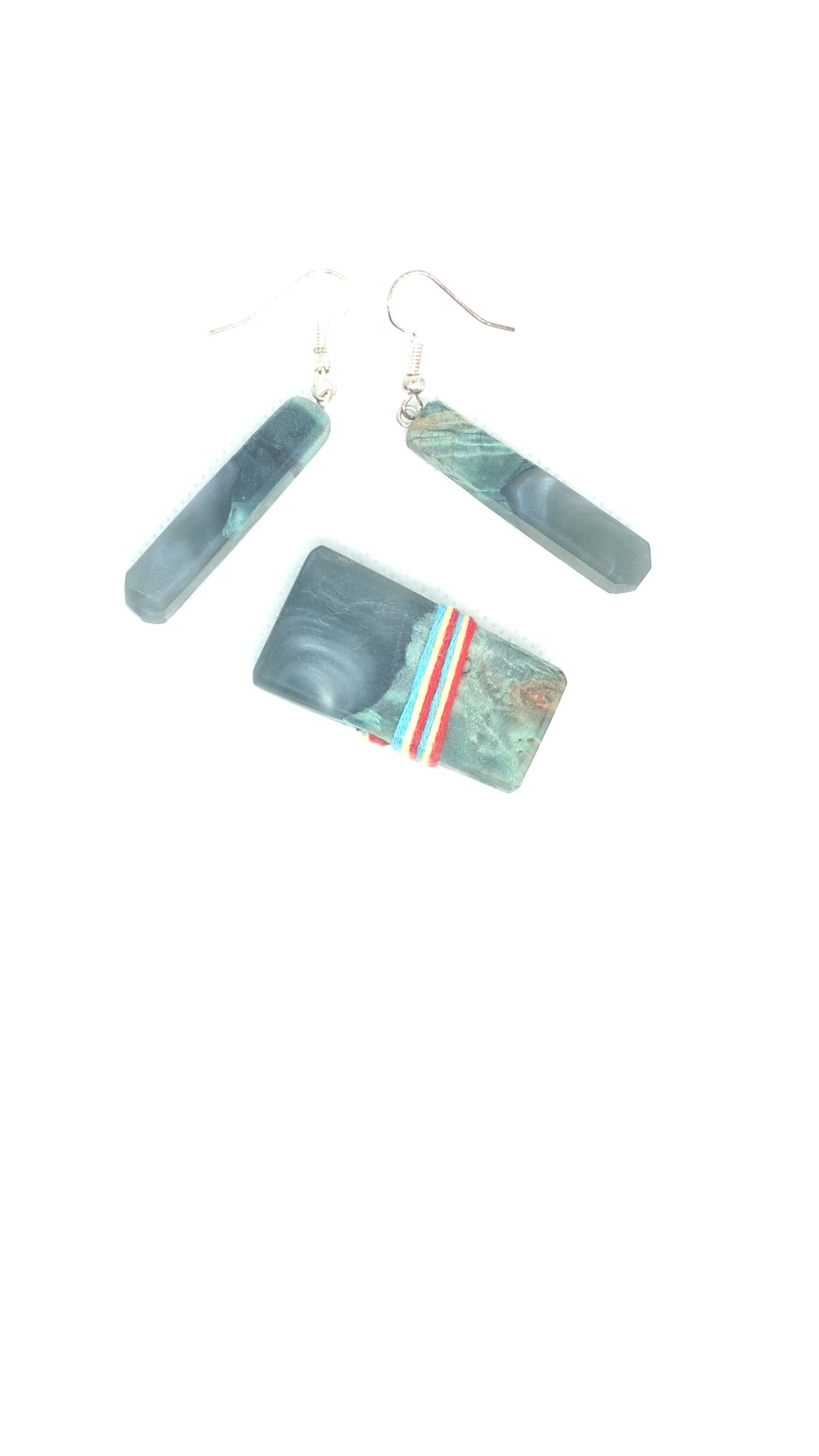Set din lemn de paltin stabilizat si rasina pigment gri metalic.Pandativ cu motiv national - tricolorul.