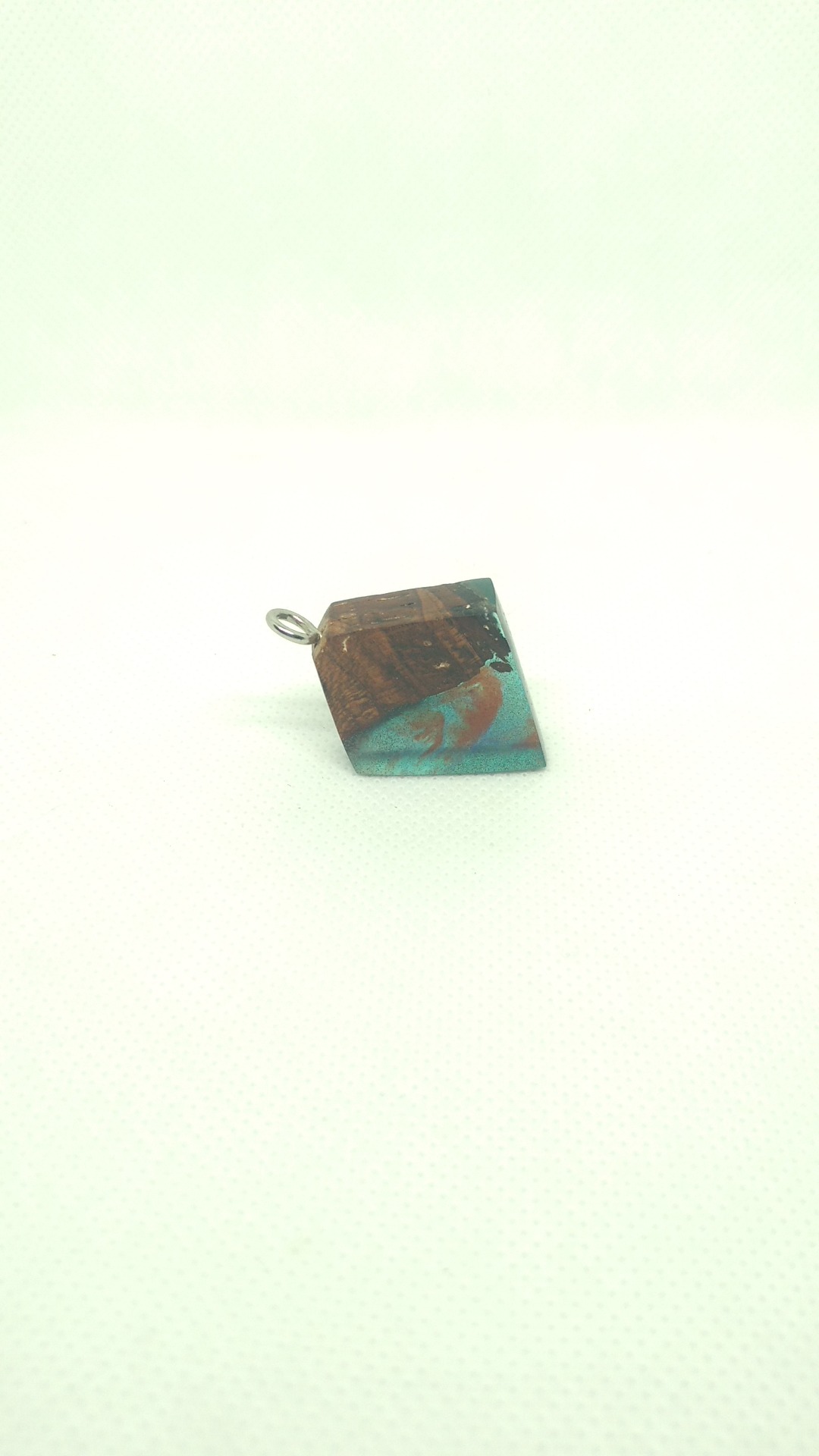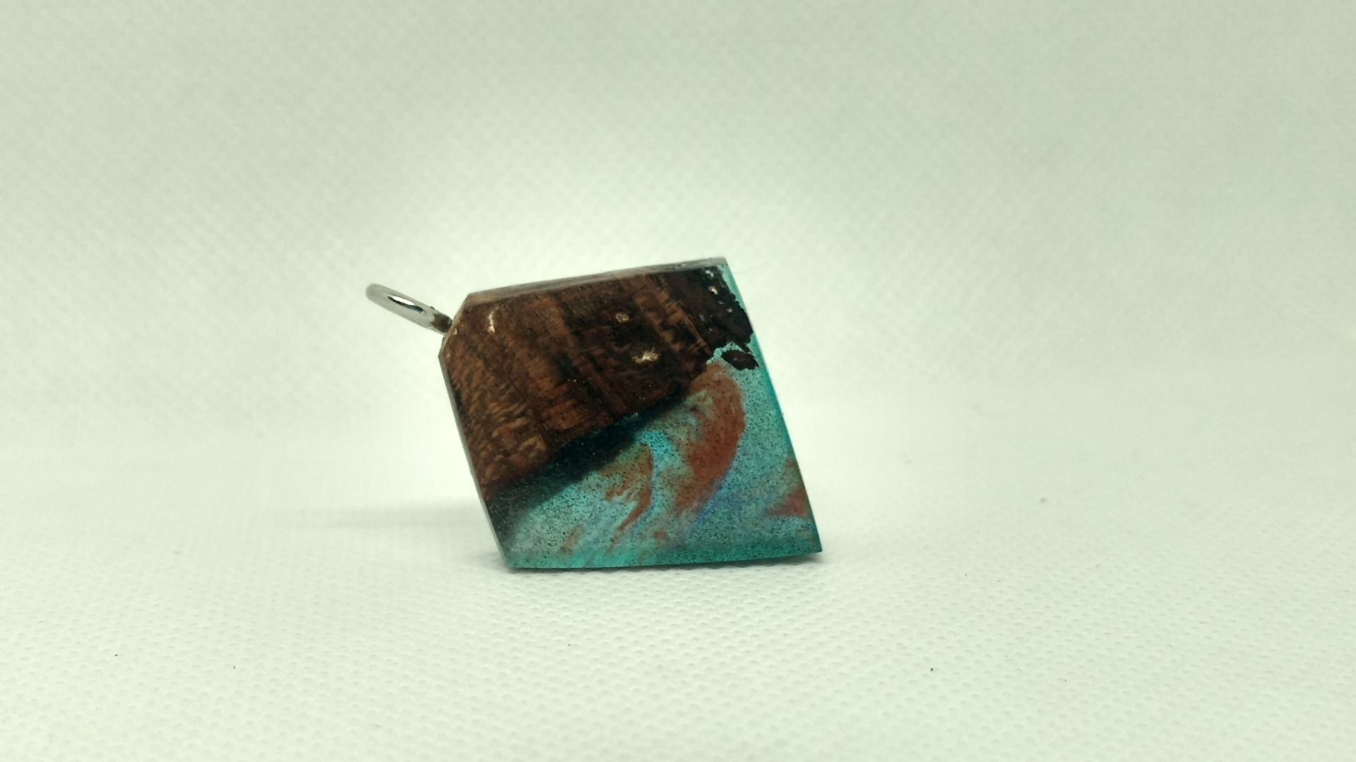 Pandativ din lemn de prun si rasina pigmentata albastru si rosu.