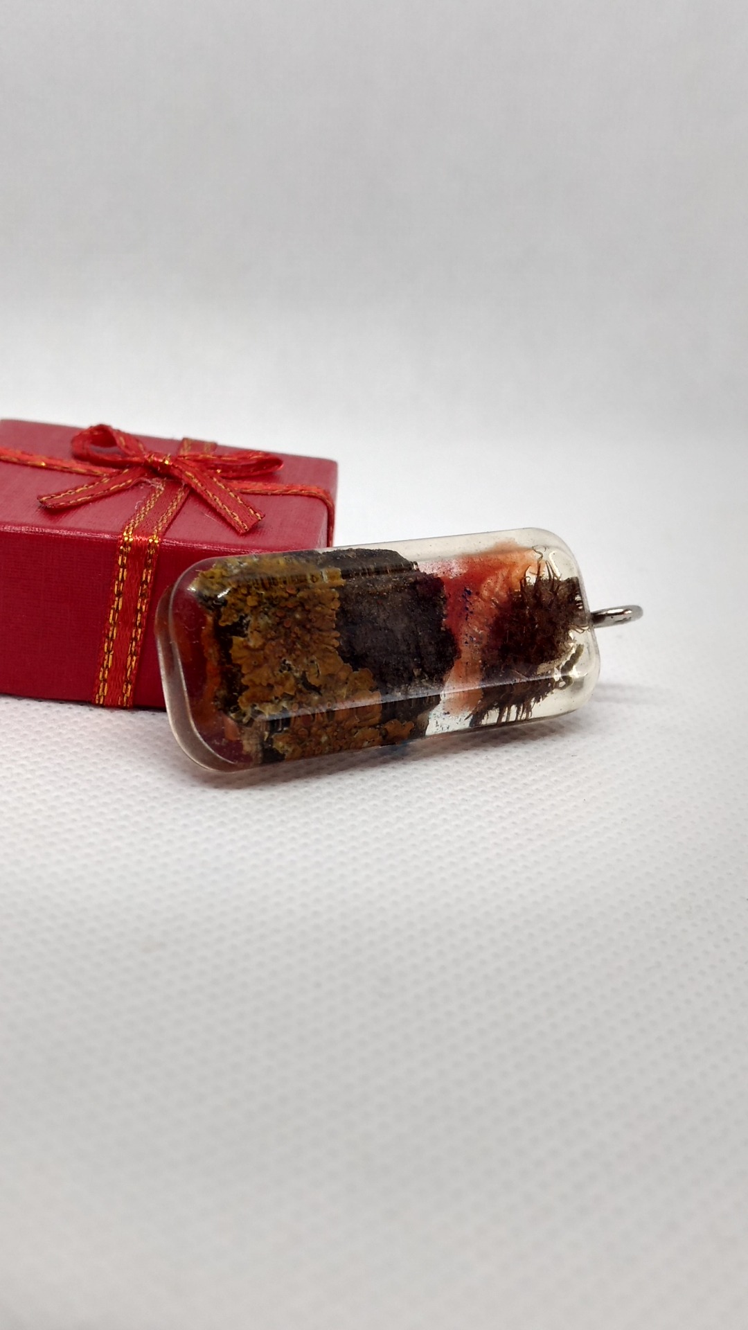 Pandativ din rasina cu insertie - licheni,scoarta copac si scaiet .